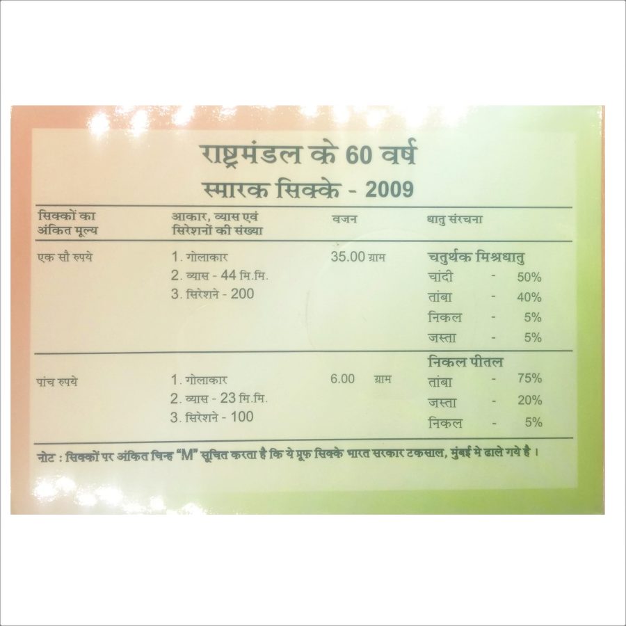 100 and 5 Rupees India Republic 2009: 60 years of Commonwealth Proof coins set