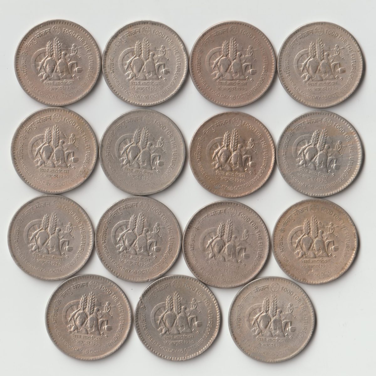15 Coins Set of One Rupees 1990 Copper-Nickel Coin of Commemorative Issue FAO- Food For Future Republic India Coinage