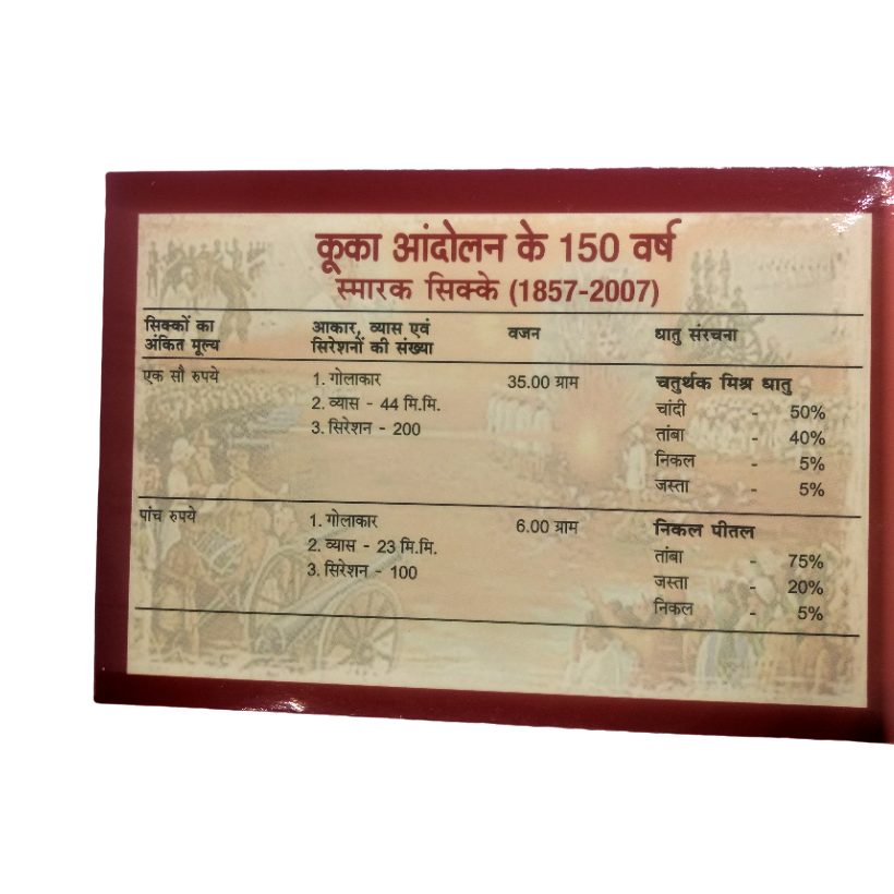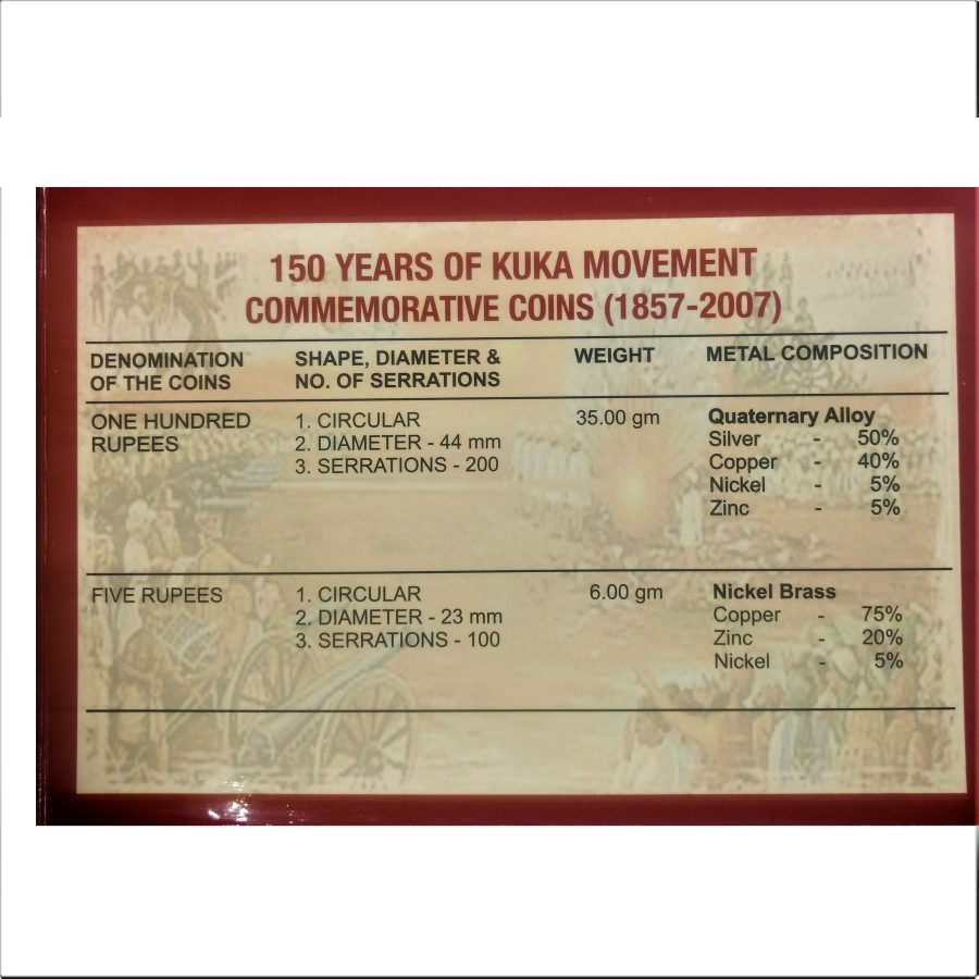 150th Year of Kuka Movement 100,5 Rupees Commemorative Coins (1857-2007) UNC Set