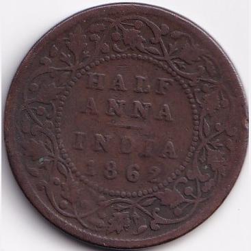 1862 Victoria Half Anna British India Coin Big Size Coin #S440