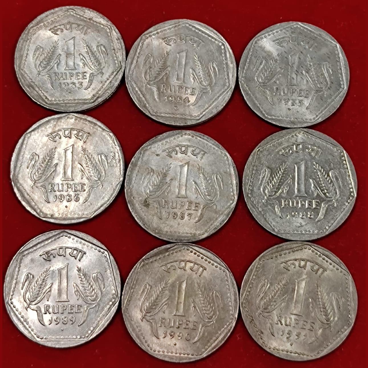 ✨ Rare 1983 to 1991 UNC 1 Rupee coin set