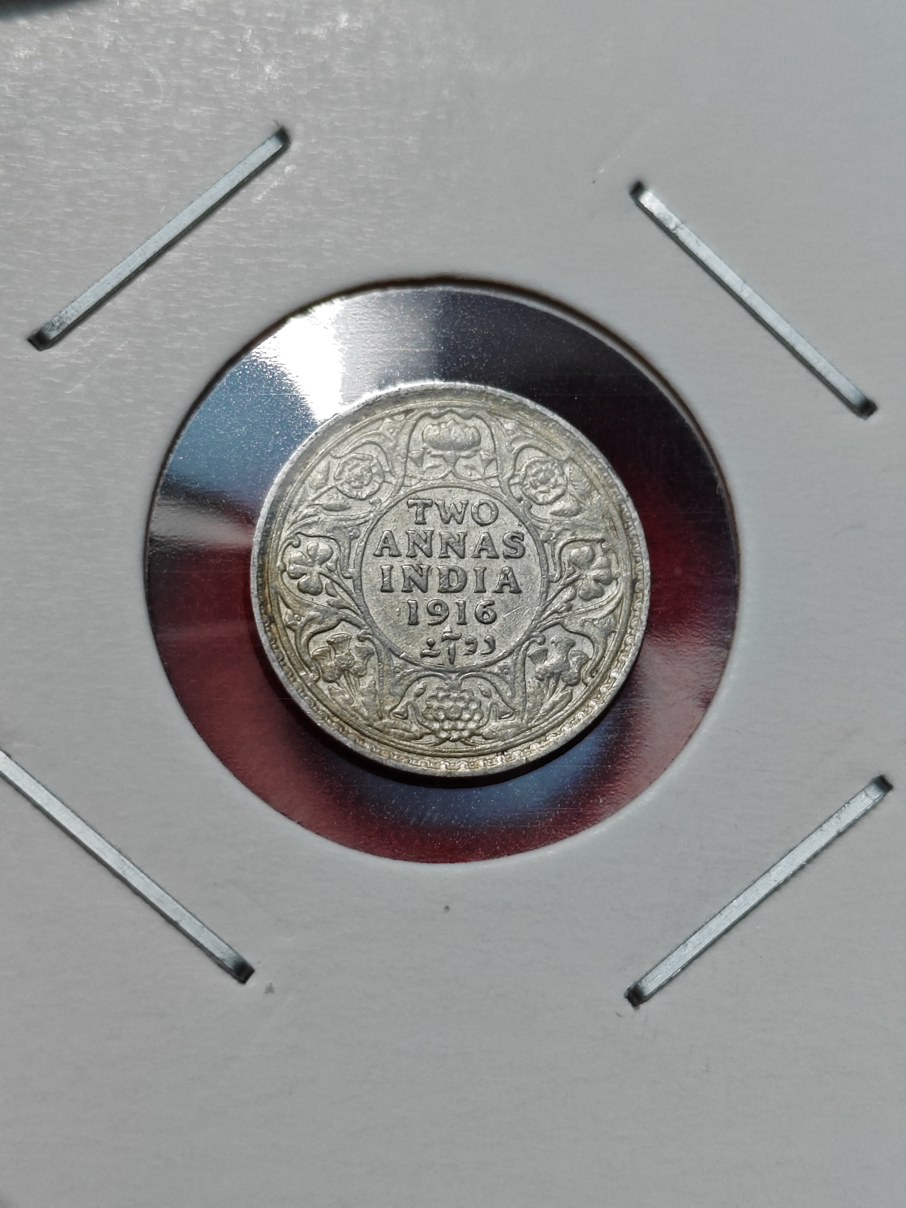 2 ANNA 1916 CALCUTTA MINT GEORGE V KING EMPEROR COIN