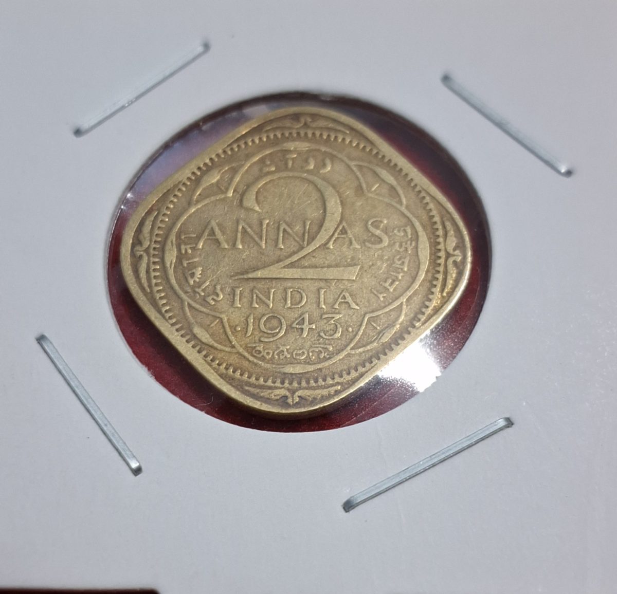 2 ANNA 1943 GEORGE VI KING EMPEROR COIN