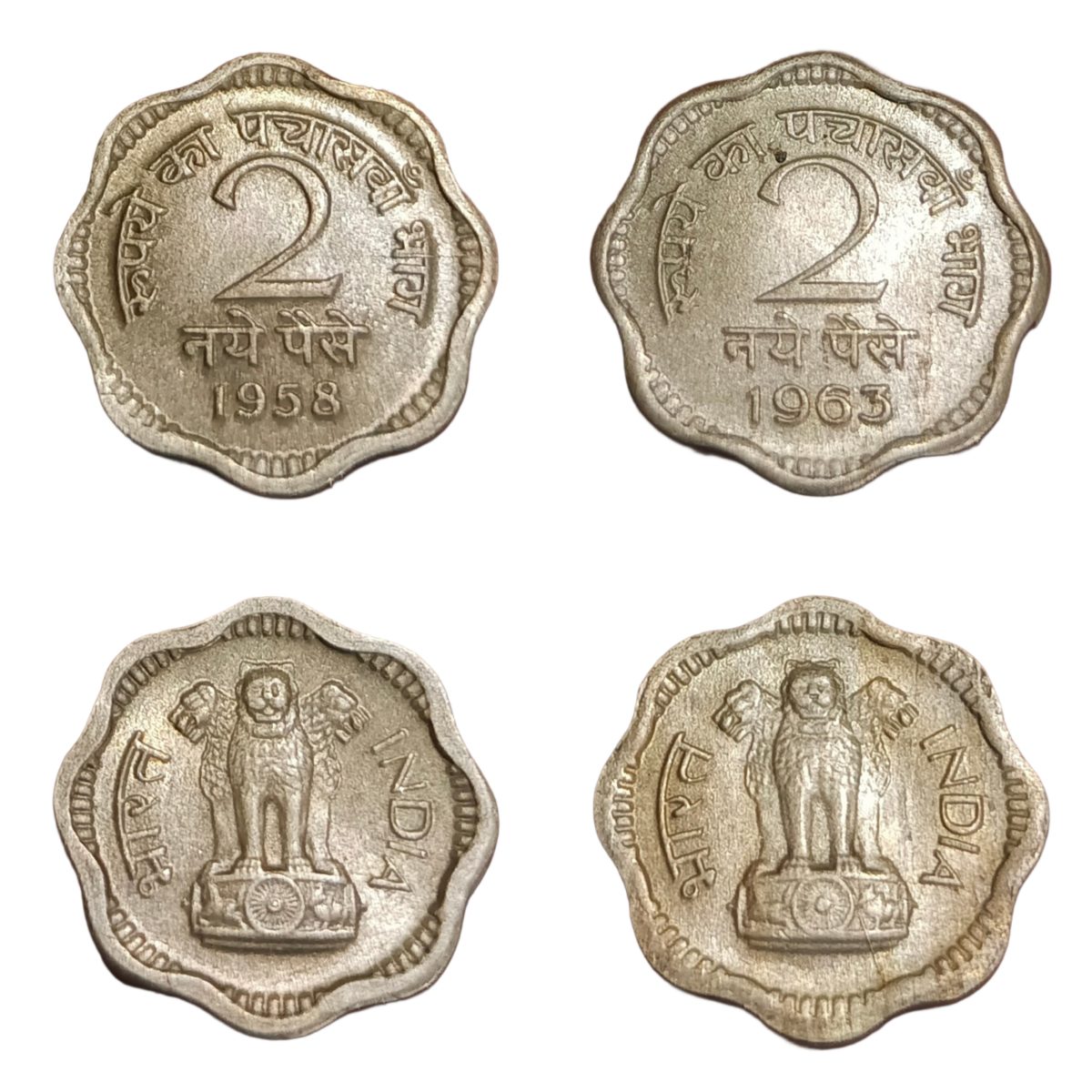 2 NAYE PAISE Cu/Ni Year 1958 and 1963 SET 2 Coins are in UNC Grades.