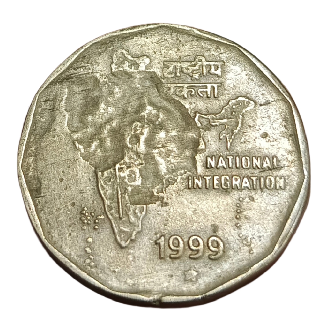 2 Rupees Cu/Ni Year 1999 Hyderabad Mint DIE CRACKS & STRUCK THROUGH Errors in High Collectable Grade.