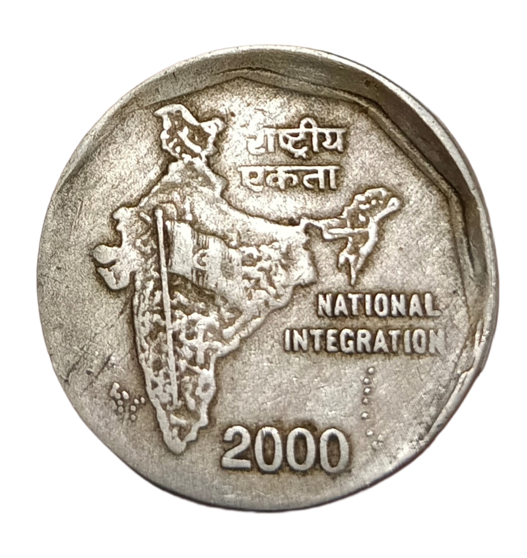 The 2 Rupees Cu/Ni coin from the year 2000 featuring an OFF CENTRE & LAMINATION error is a rare collectible grade piece that holds a unique allure for numismatists and collectors. Issued by the Indian government, this copper-nickel coin showcases a fascinating error in its minting process, making it a standout piece in any collection. The off-centre strike and lamination error add a distinctive touch to this coin, setting it apart from standard minted coins.