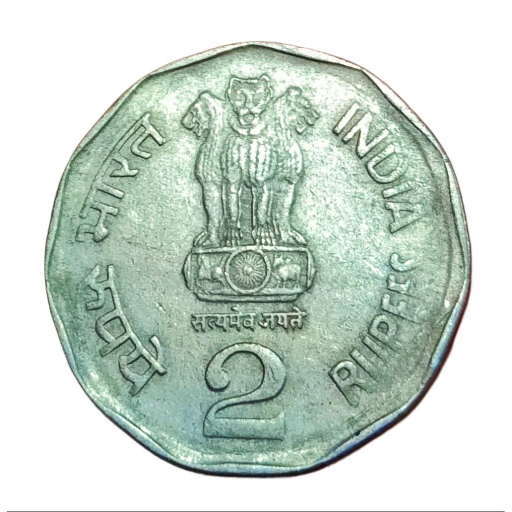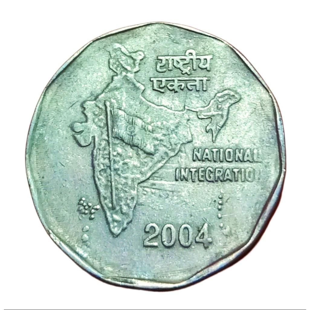 2 Rupees Cu/Ni Year 2004 CALCUTTA Mint with “Satyameva Jayate” Impression GHOSTING Error **RARE** Collectable Grade.
