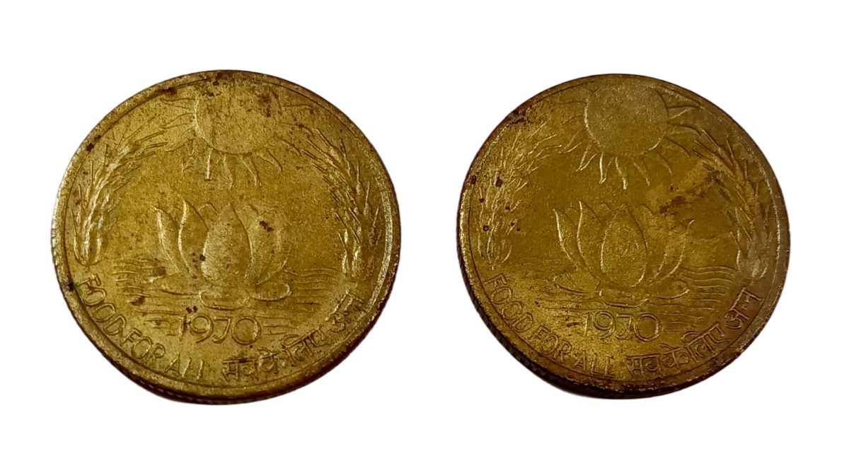 20 Paisa Brass COMMEMORATIVE Issue SUN AND LOTUS Year 1970 SET 2 Coins High Collectable Grades.