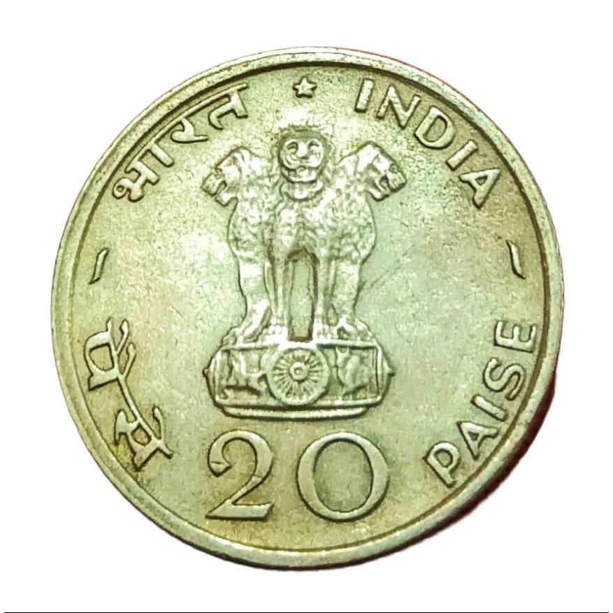 20 Paisa Brass COMMEMORATIVE Issue Year 1970 SUN and LOTUS **SCARE** High Collectable Grade.