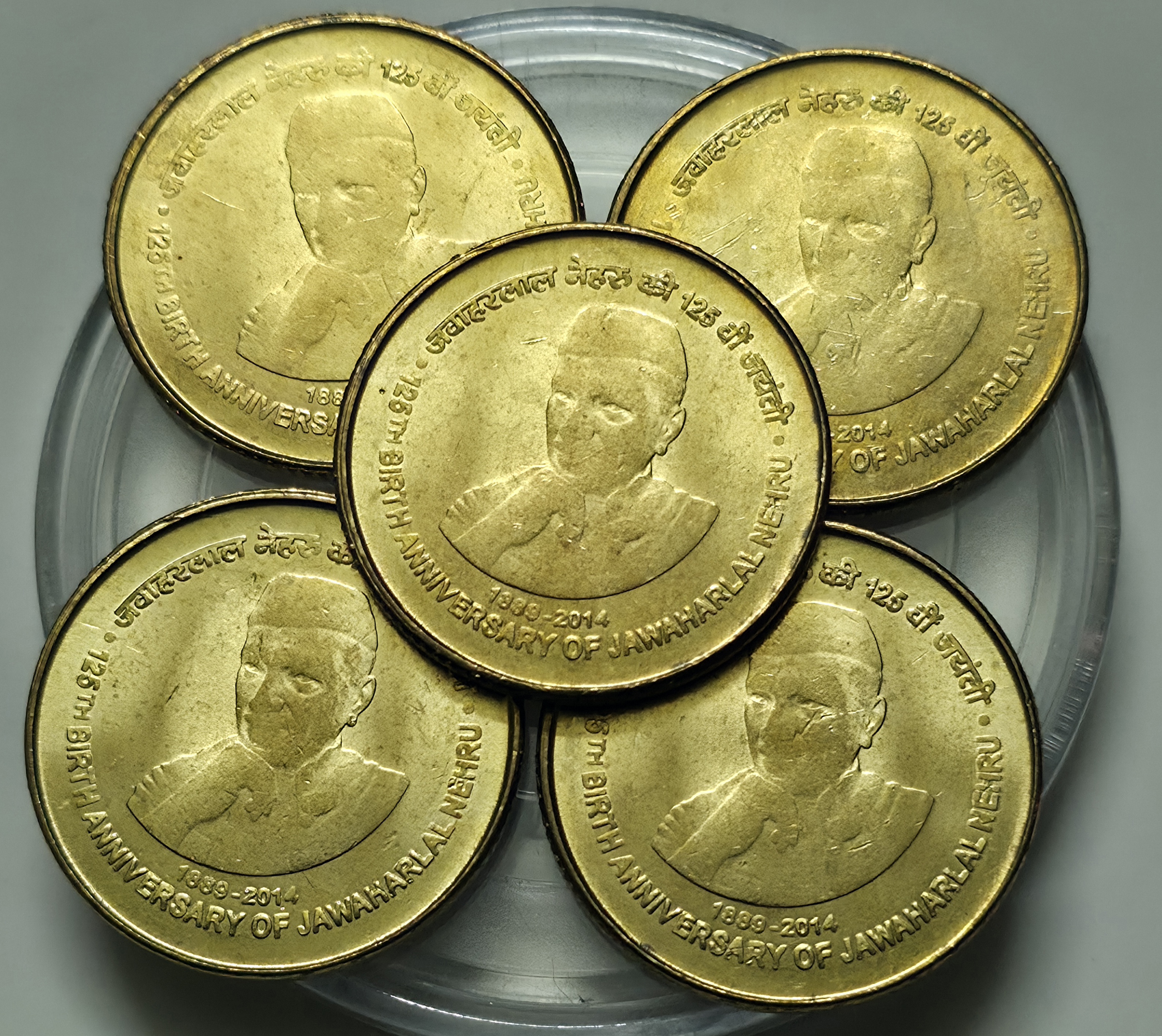5 Rs 125th Birth Anniversary Of Jawaharlal Nehru kolkata Mint Coin Unc