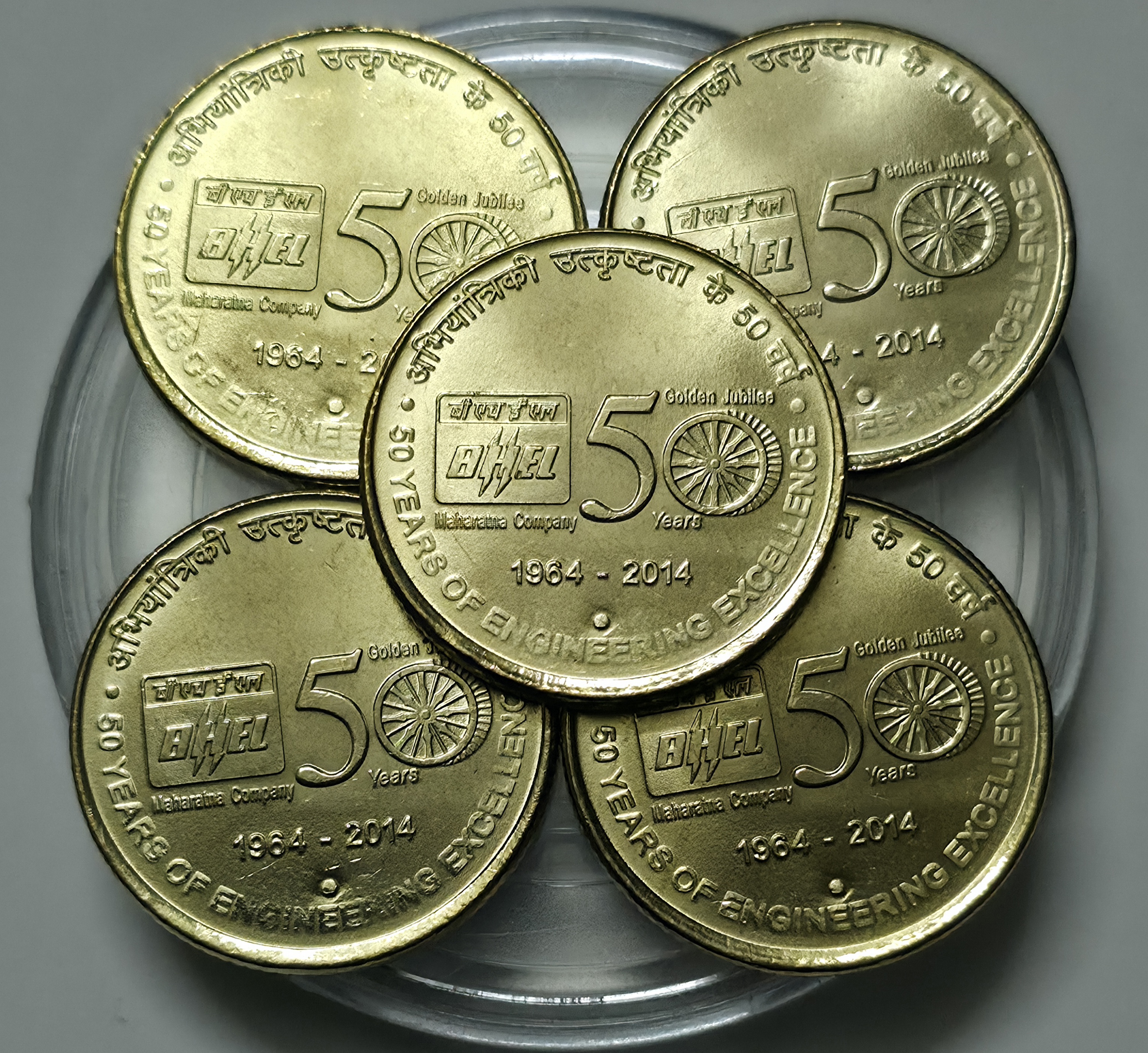 5 Rs 50 Years Of Bhel Of Engineering Excellence Noida Mint Coin Unc