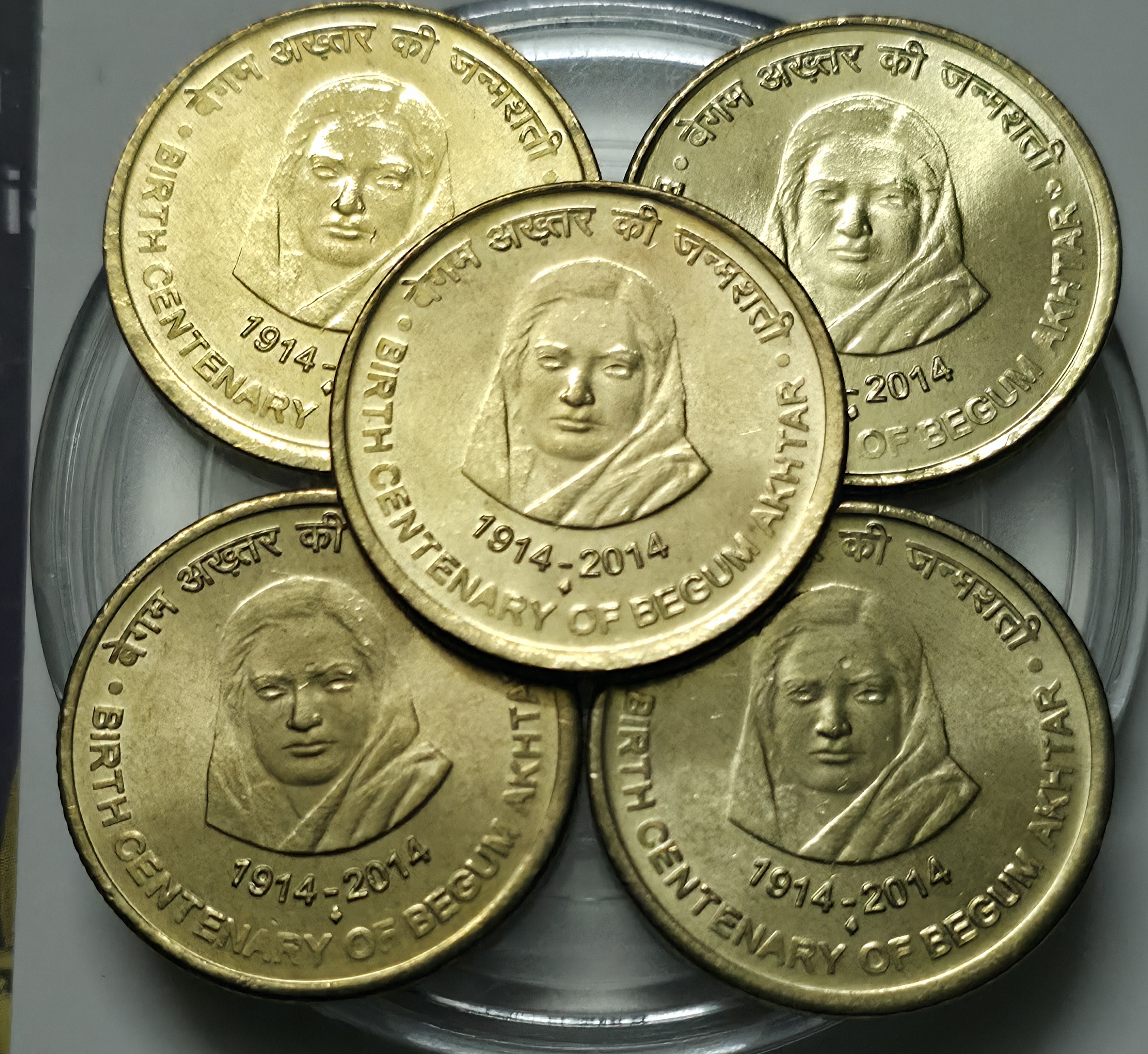 5 Rs Begam Akhtar Birth Centenary Mumbai Mint Coin Unc