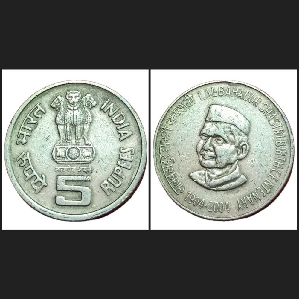 5 Rs Cu/Ni COMMEMORATIVE Issue LAL BAHADUR SHASTRI “FIRST STRIKE” K Mint **RARE** Collectable Grade