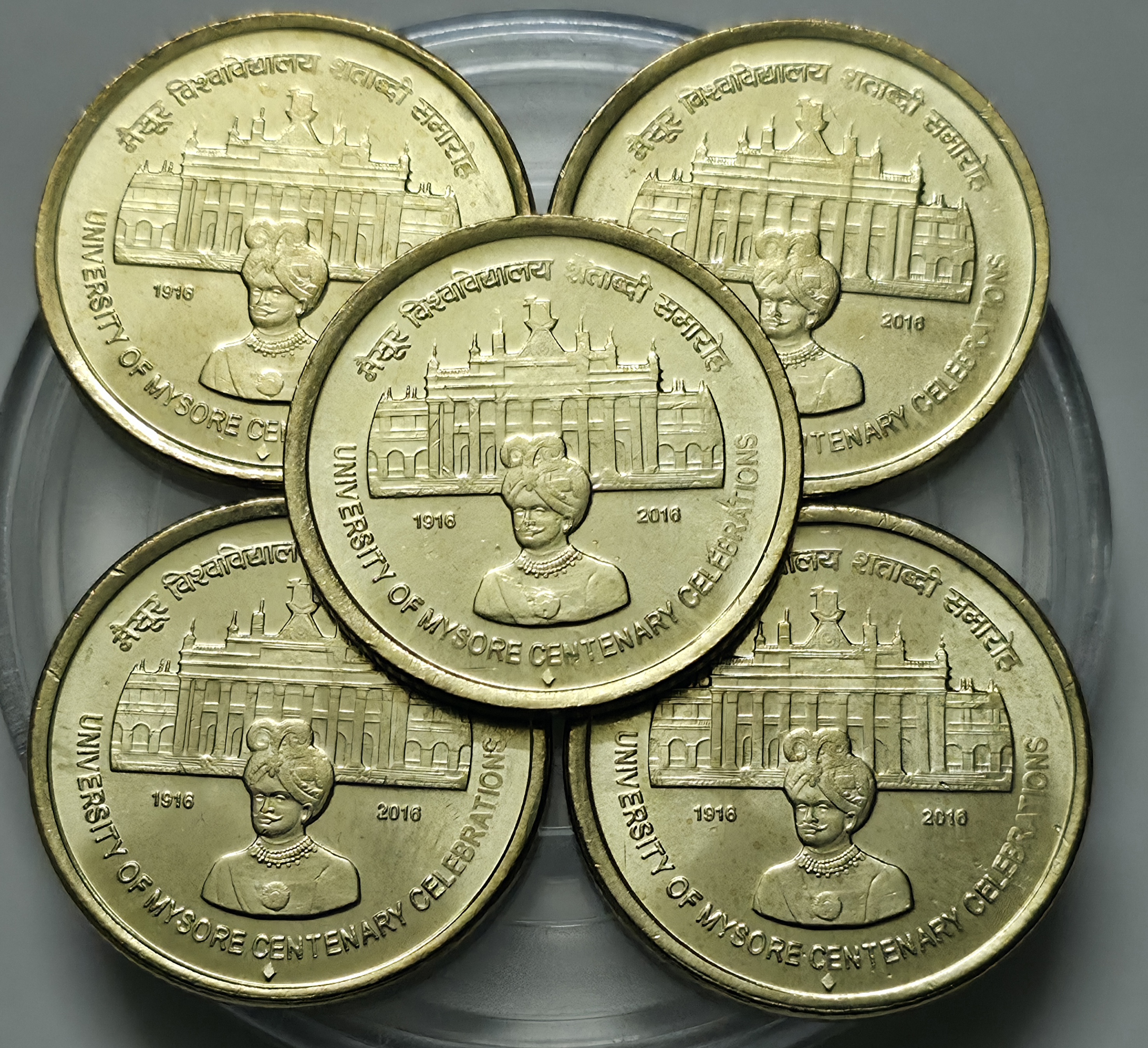 - 5 Rs University Of Mysore Centenary Celebration Mumbai Mint Coin Unc