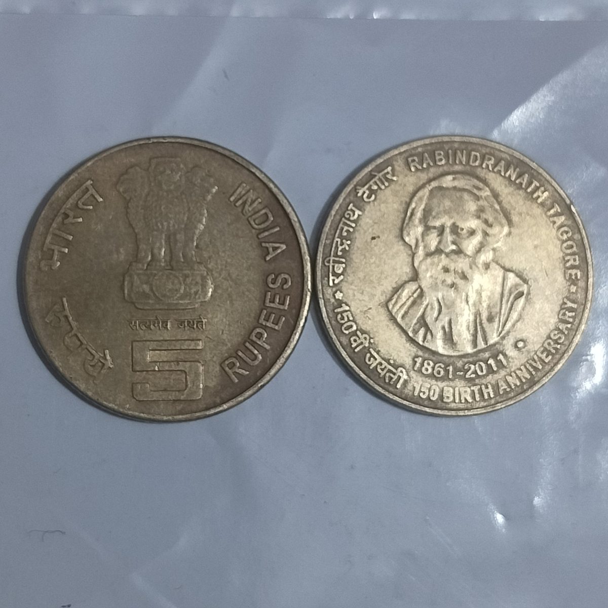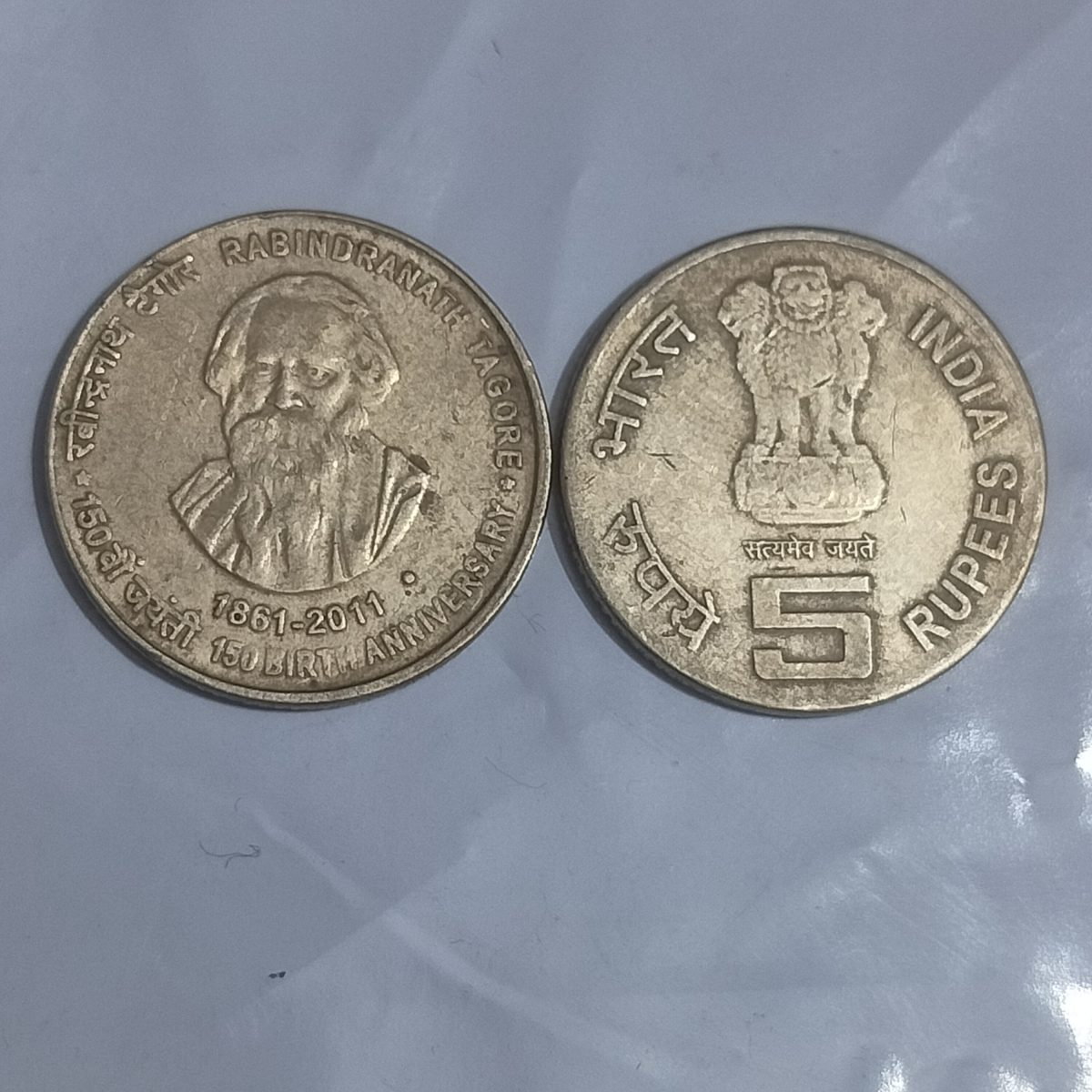 5 Rupees 150th Aniversary of Rabindranath Tagore 1861-2011 India Commemorative Brass Nikel Coin of Republic India
