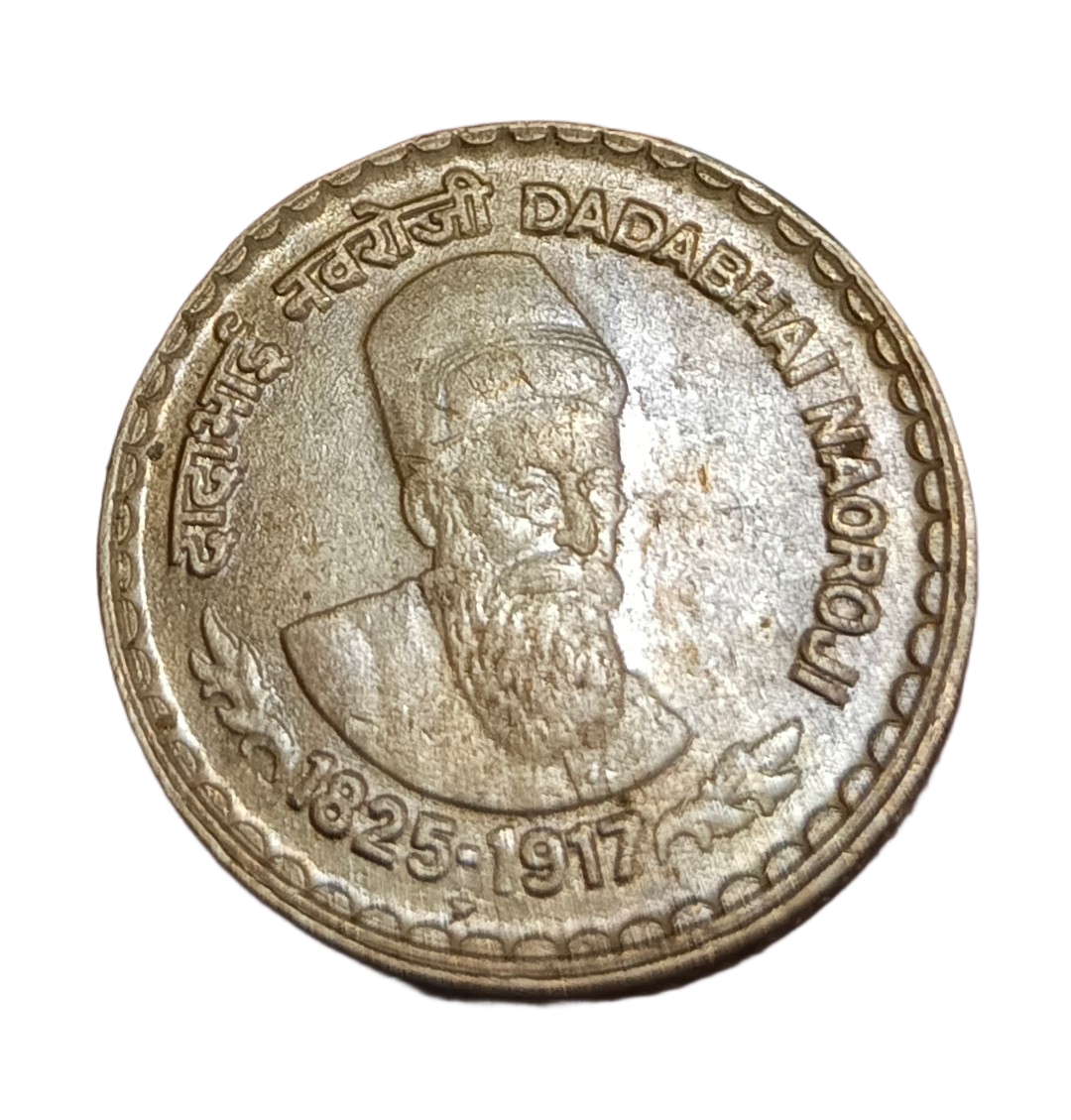 5 Rupees Cu/Ni COMMEMORATIVE Issue DADABHAI NAROJI Prominent Star HYDERABAD Mint **RARE** UNC Grade.