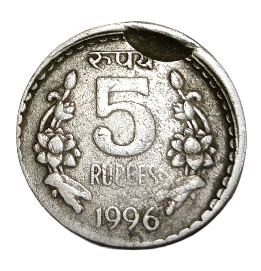5 Rupees Cu/Ni Year 1996 MAD & INDENT Error in High Collectable Grade.