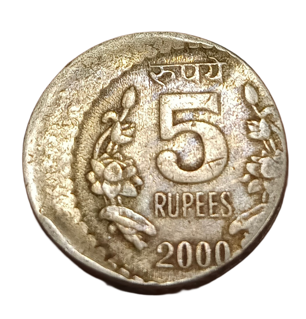 5 Rupees Cu/Ni Year 2000 Calcutta Mint Major OFF CENTRE Error Collectable Grade.
