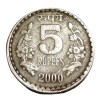 5 Rupees Cu/Ni Year 2000 Major STRUCK THROUGH Error Collectable Grade.
