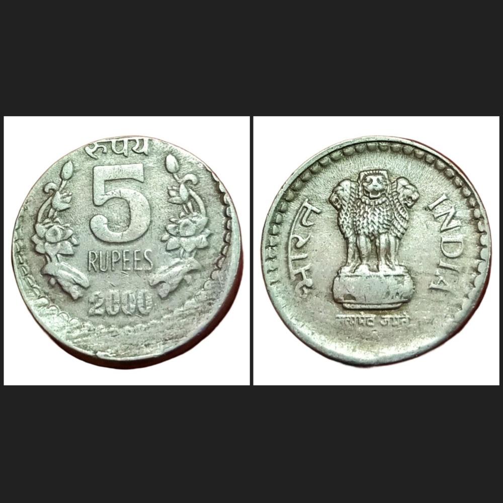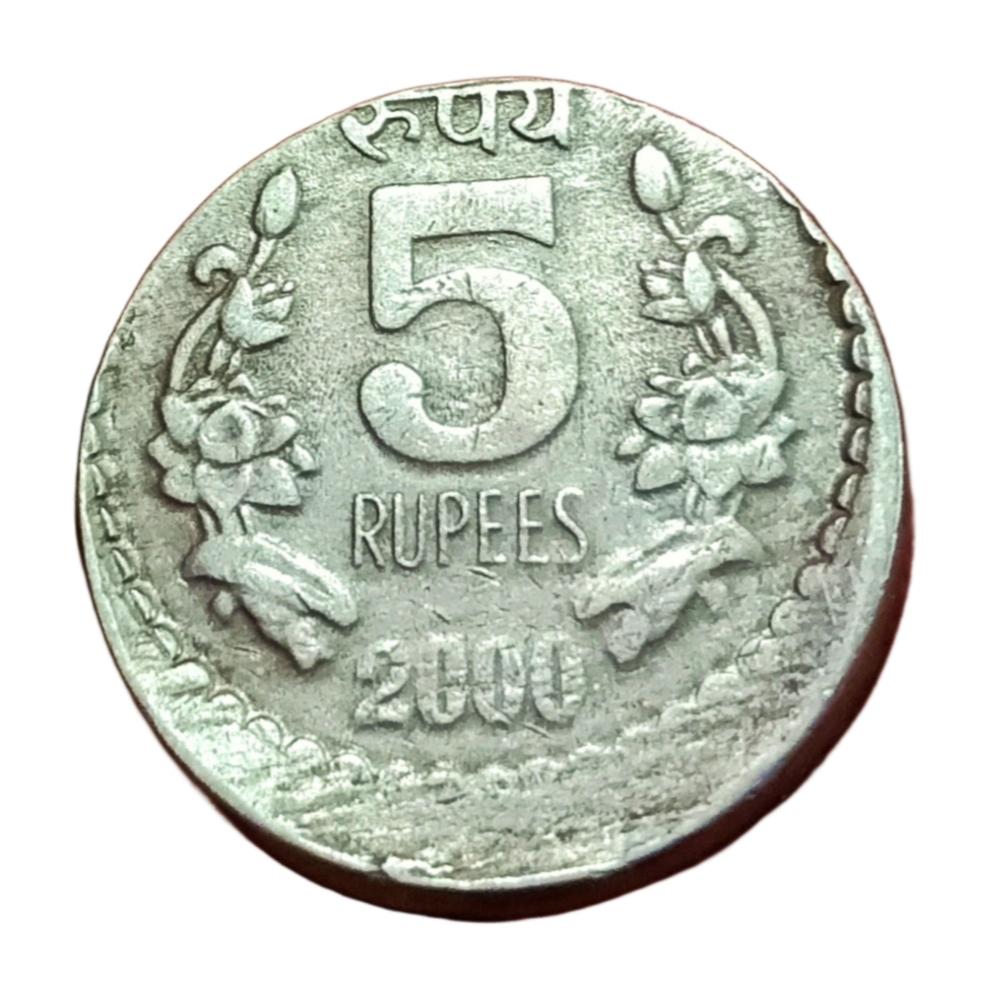 5 Rupees Cu/Ni Year 2000 Vertical MISALIGNED DIE SHIFT “MAD” Error **V. SCARE** Collectable Grade.