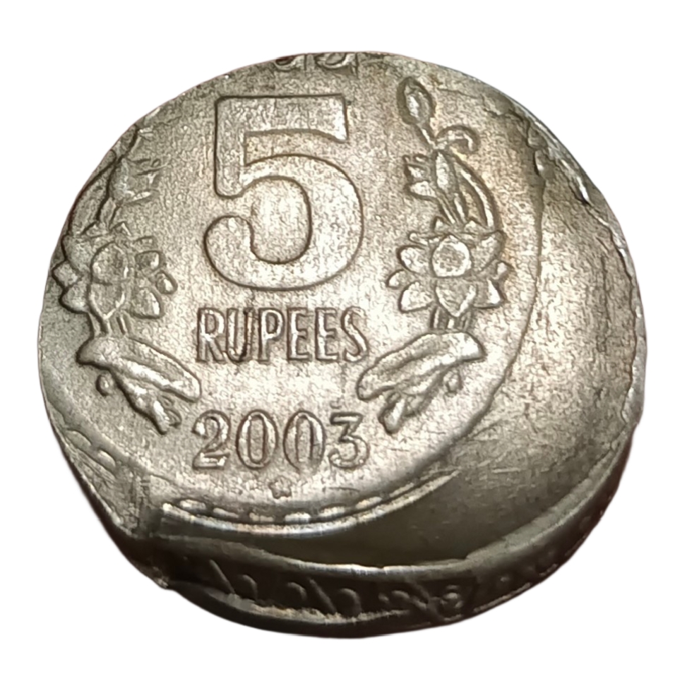 5 Rupees Cu/Ni Year 2003 Hyderabad Mint BENDED OFF CENTRE Error **SCARE** UNC Grade.