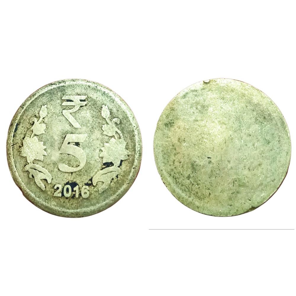 5 Rupees Ni/Brs 2016 REVERSE UNIFACE Error One Side Printed One Side Blank **RARE** Used Condition