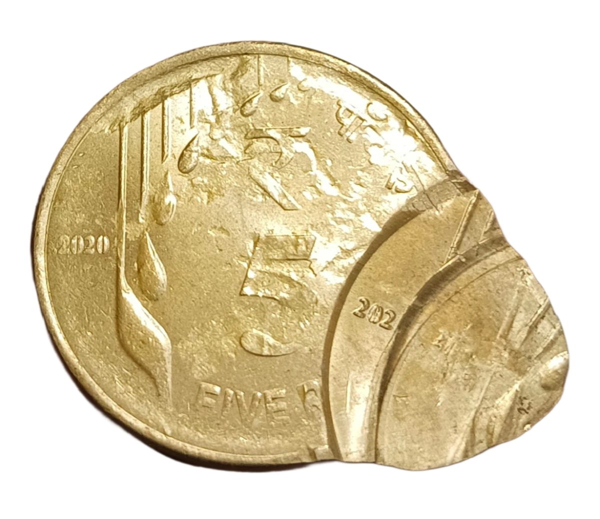 5 Rupees Ni/Brs New Issue Year 2020 with TRIPLE STRIKES Error in UNC Grade.