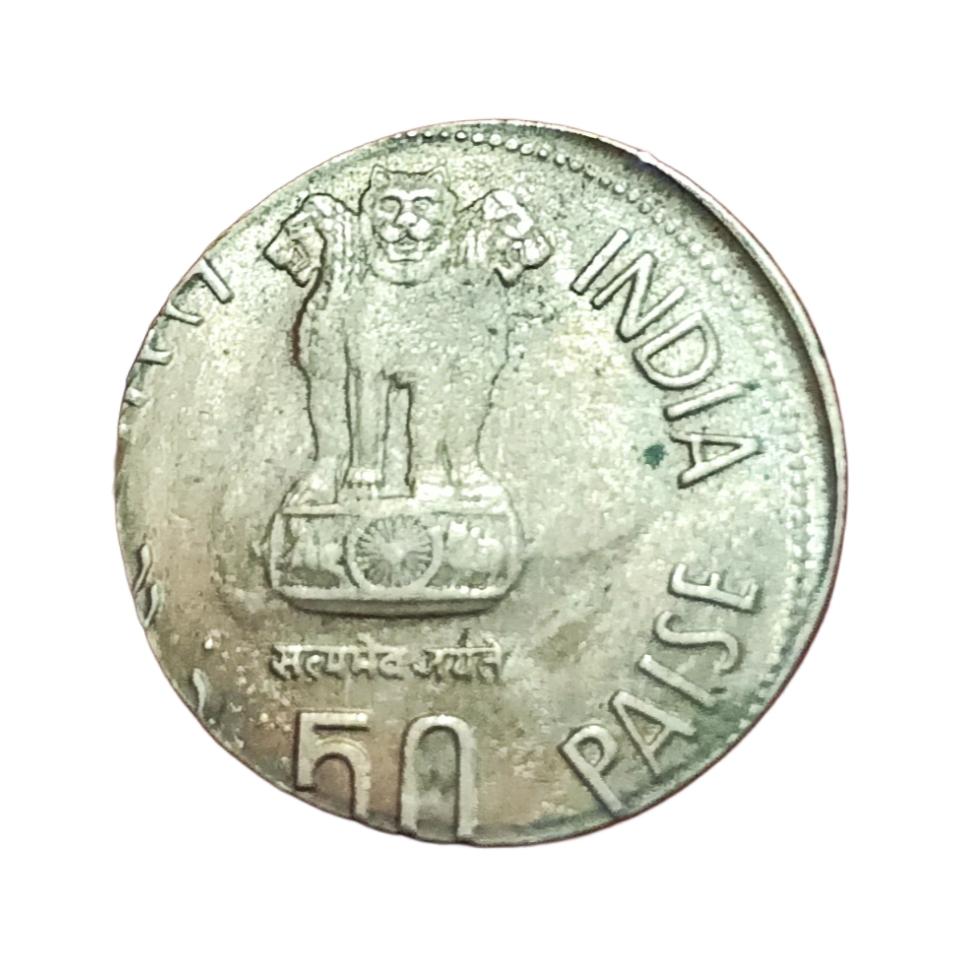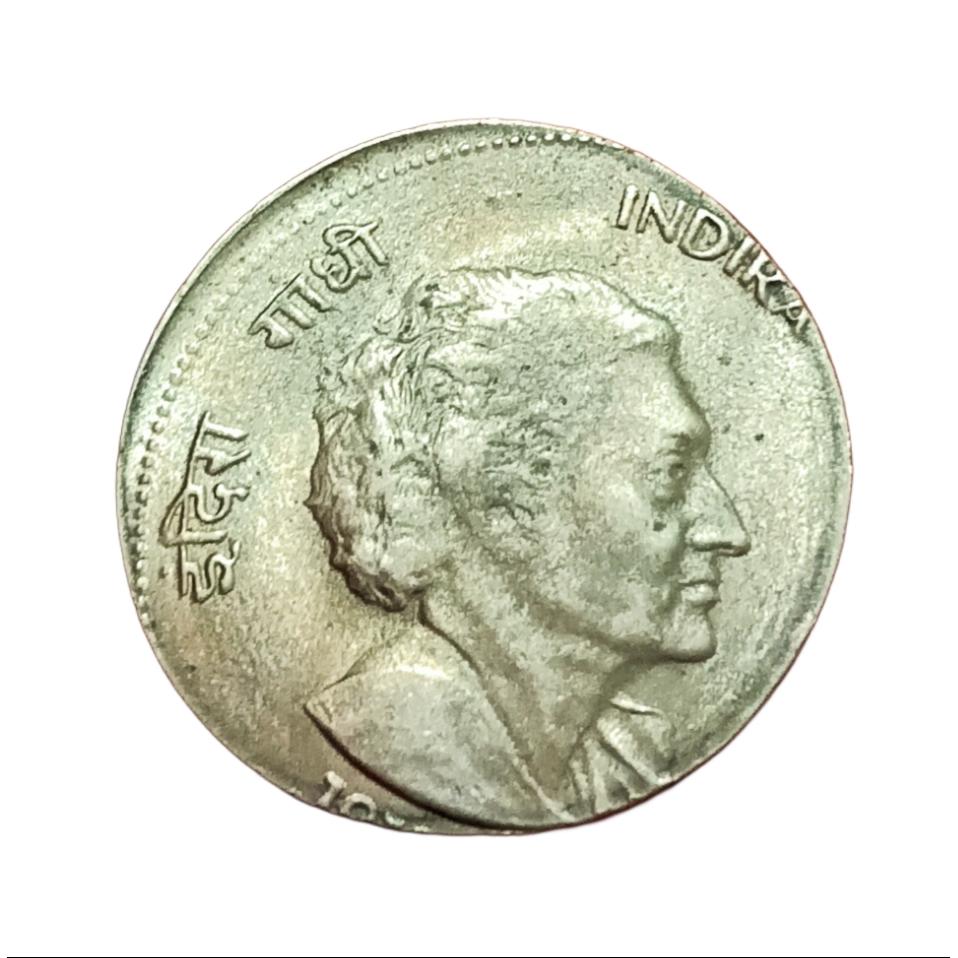50 Paisa COMMEMORATIVE Indira Gandhi WRONG PLANCHET Struck on 25p Planchet Error **V.V RARE** AUNC