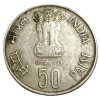 50 Paisa Cu/Ni COMMEMORATIVE Issue Indira Gandhi “MULE” One side dotted border one side plain & GHOSTING Error Collectable Grade.