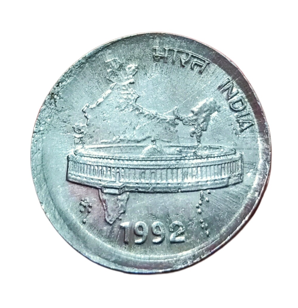 50 Paisa Fss Year 1992 BROAD STRUCK REVERSE LATE STAGE BROCKAGE Error **RARE** High Grade.