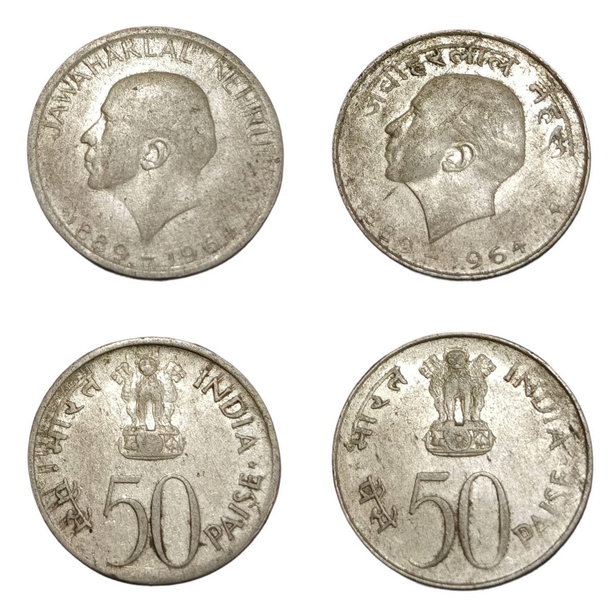 50 Paisa Nickel Magnetic COMMEMORATIVE Issue JAWAHARLAL NEHRU “English & Hindi” SET 2 Coins Collectable Grades.