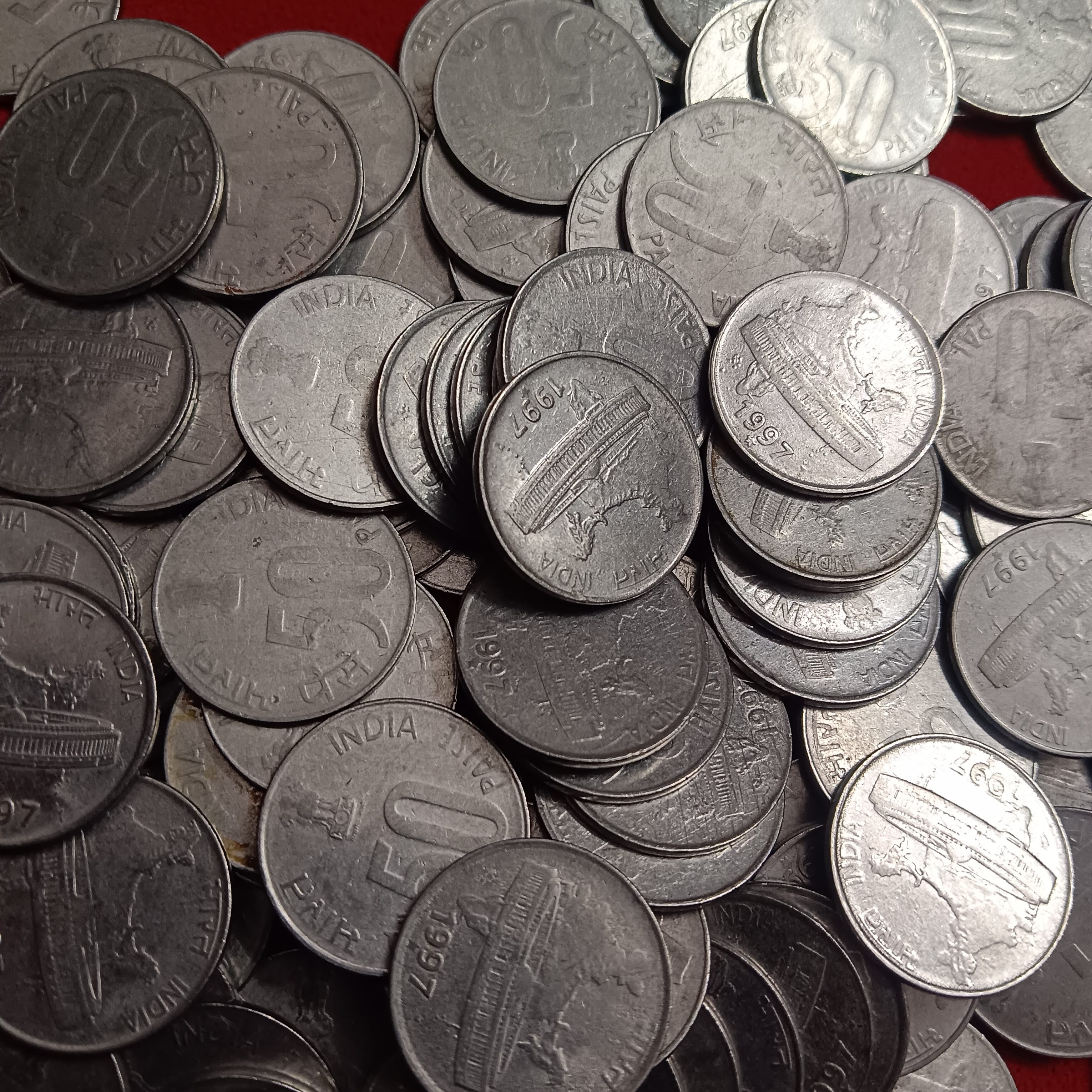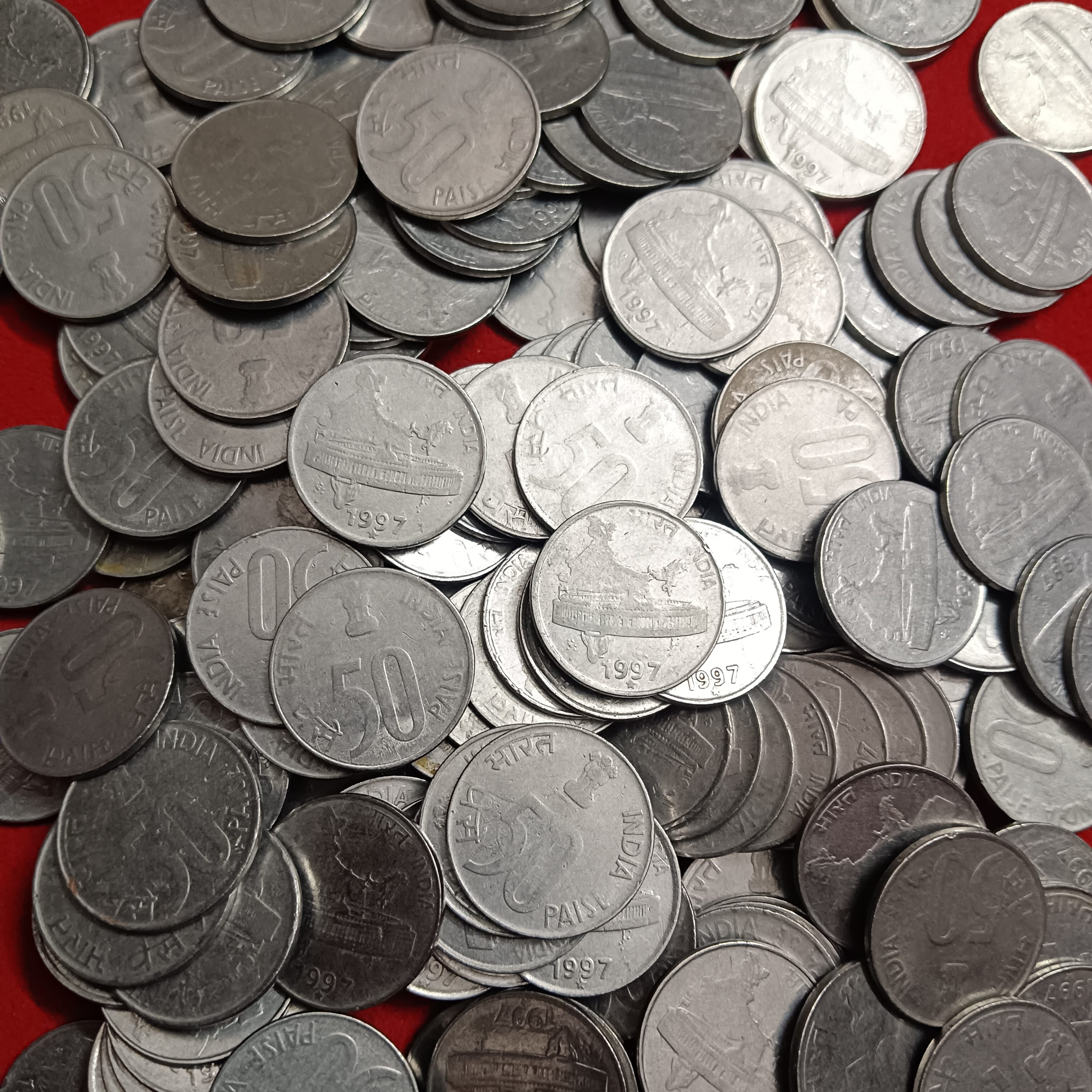 - 50 Paise Bharat India Scare Coin 1997 Year Hyderabad Mint 100 Pcs Given Republic of India