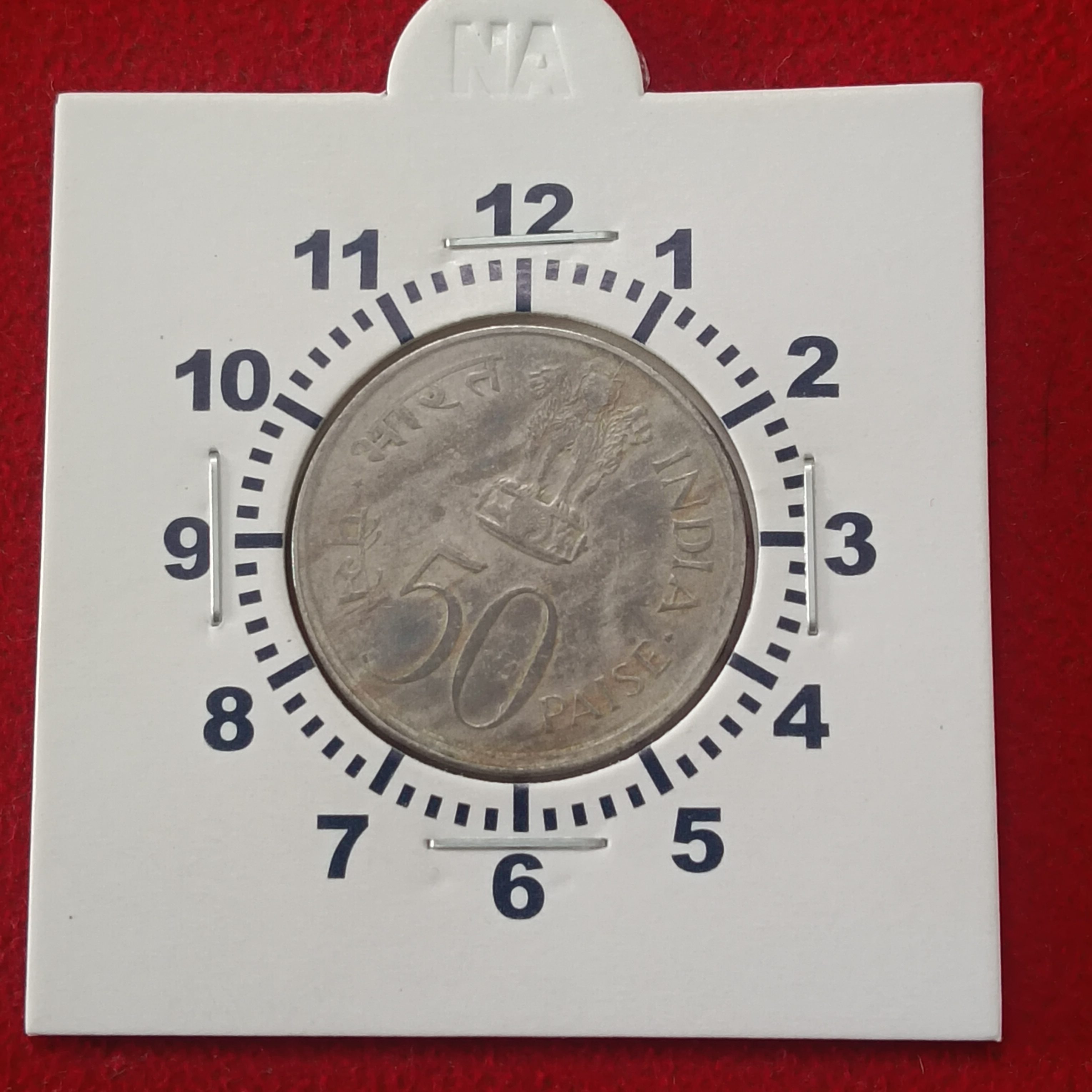 - 50 Paise Copper Nickel Scare 1″o Clock Error Coin National Integration 1982 Year Bombay Mint