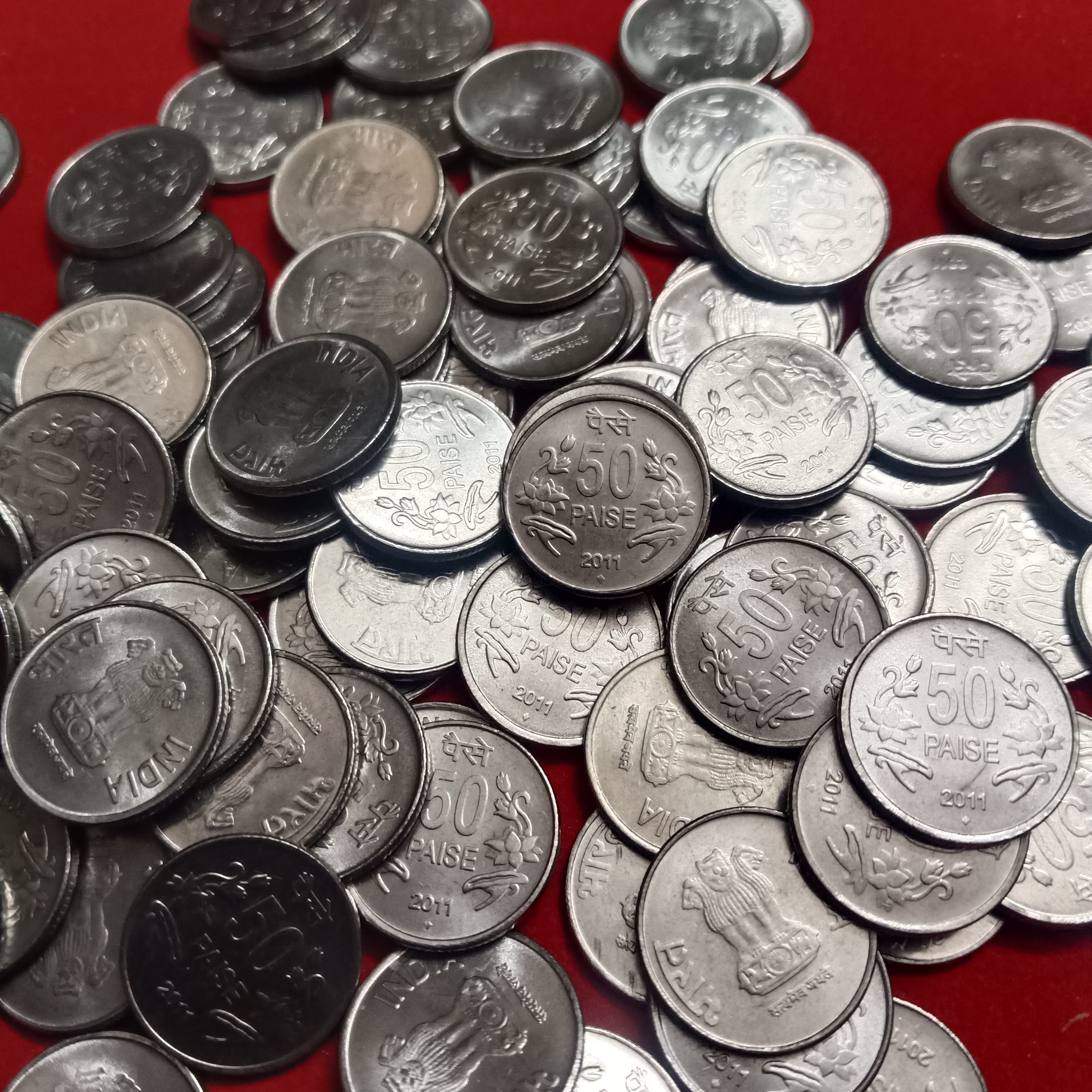 - 50 Paise Floral First Issue Scare Coins 2011 Year Bombay Mint Gem Unc Condition Reserve Bank of India