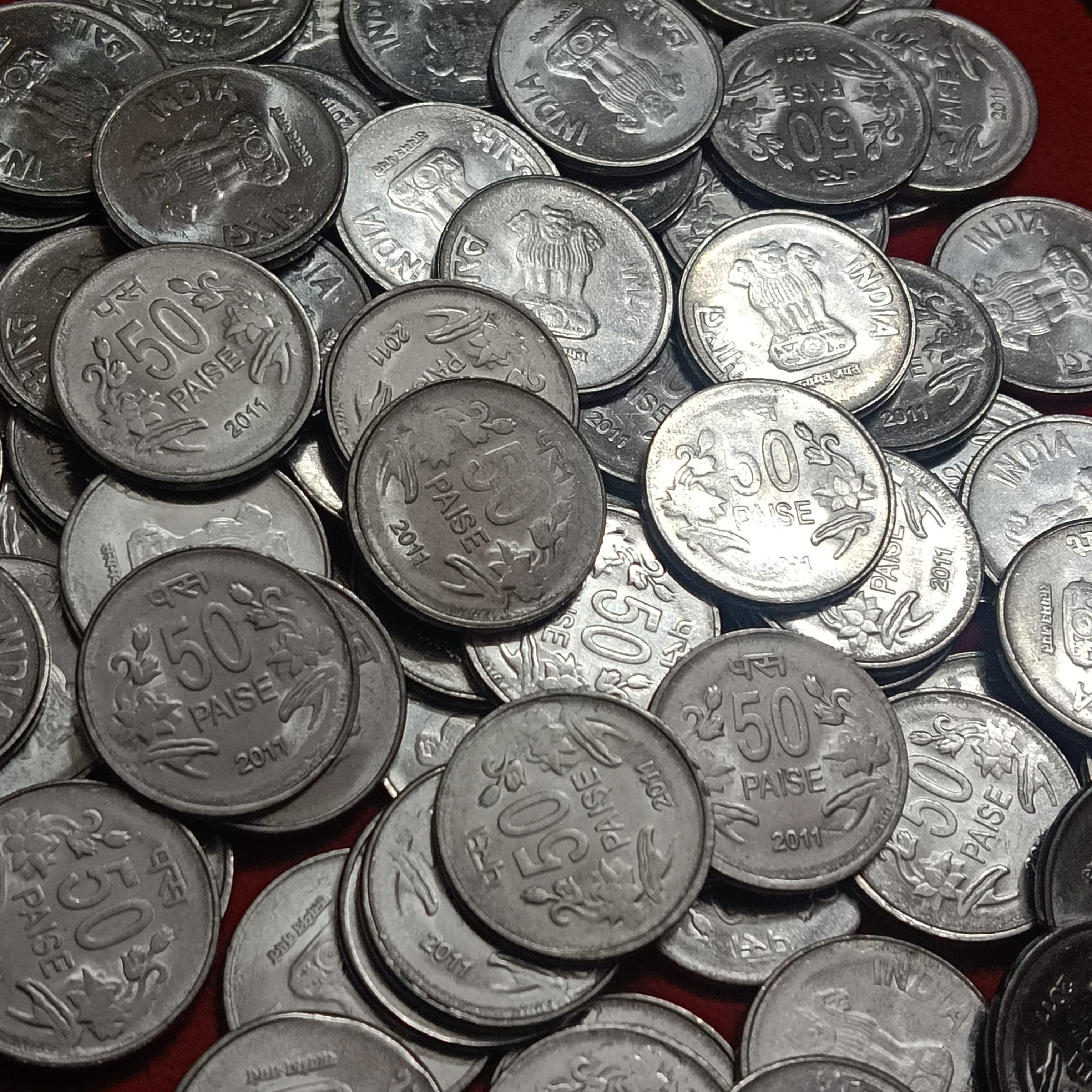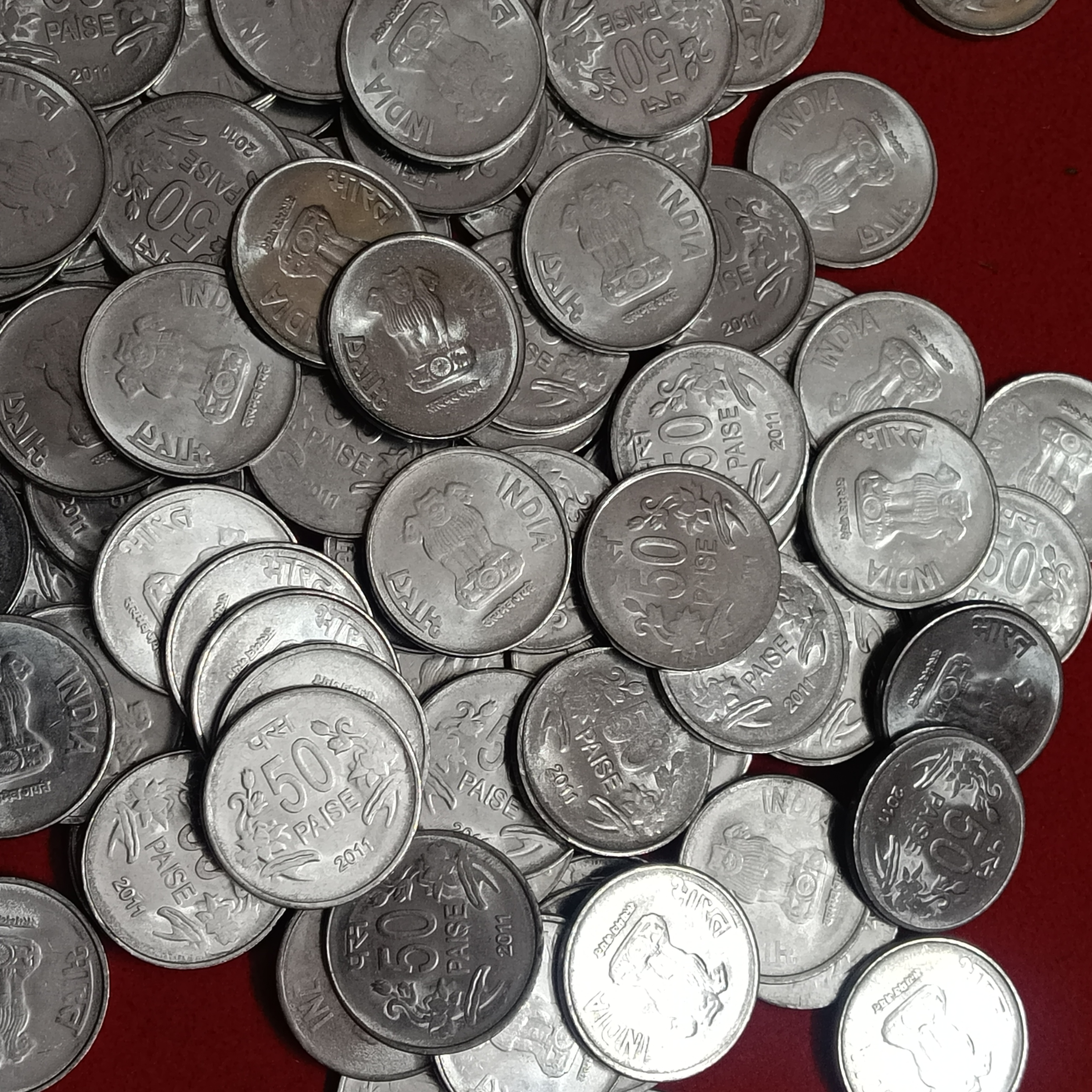 - 50 Paise Floral First Issue Scare Coins 2011 Year Calcutta Mint Gem Unc Condition Reserve Bank of India