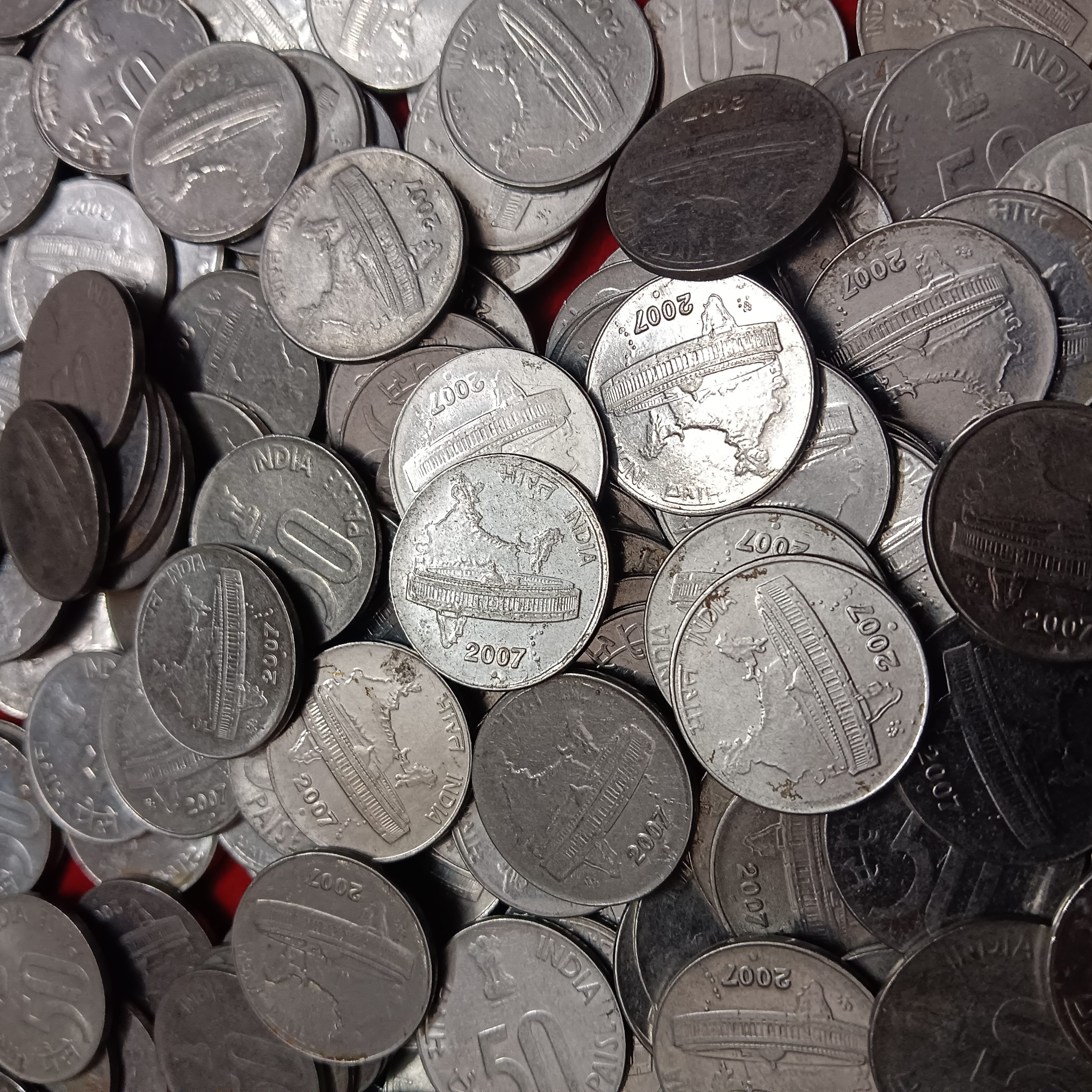 - 50 Paise India Scare Coin 2007 Year Noida Mint 100 Pcs Given Republic of India