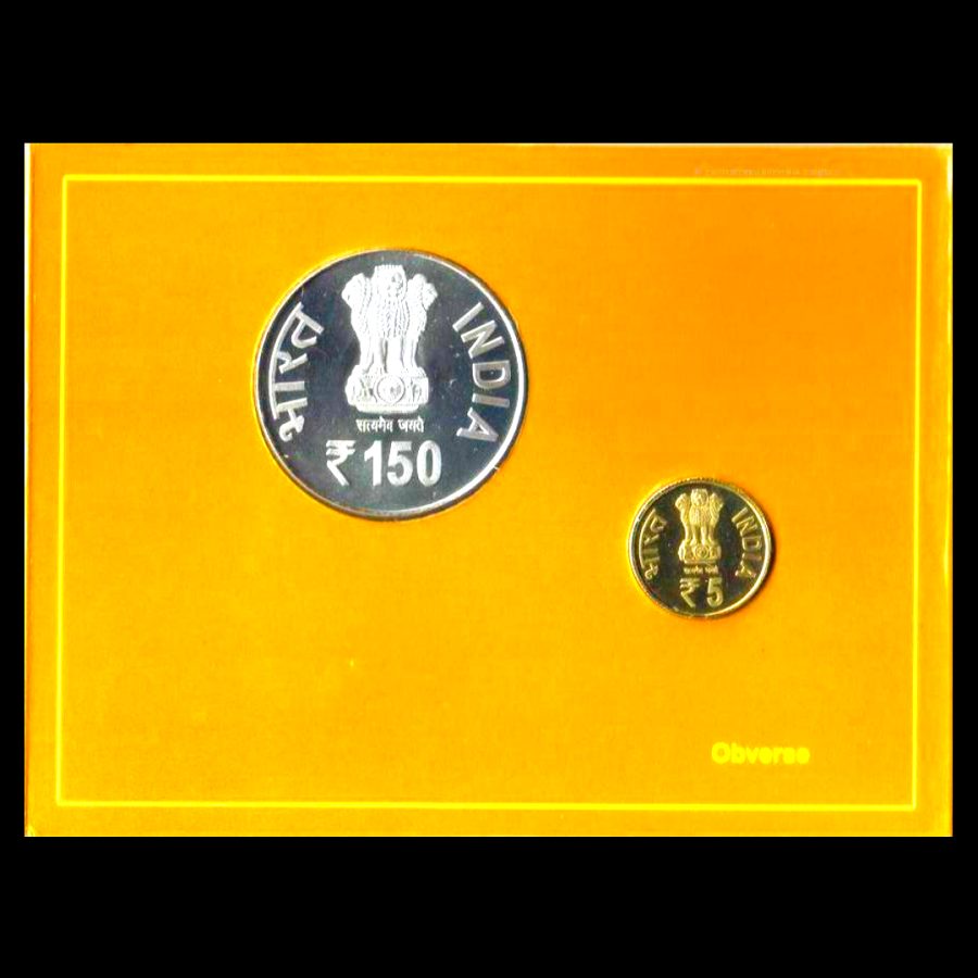 50 Years Of Comptroller & Auditor 2010 Proof Set 150 Ruppes and 5 Ruppes Coin Set Kolkata Mint issue