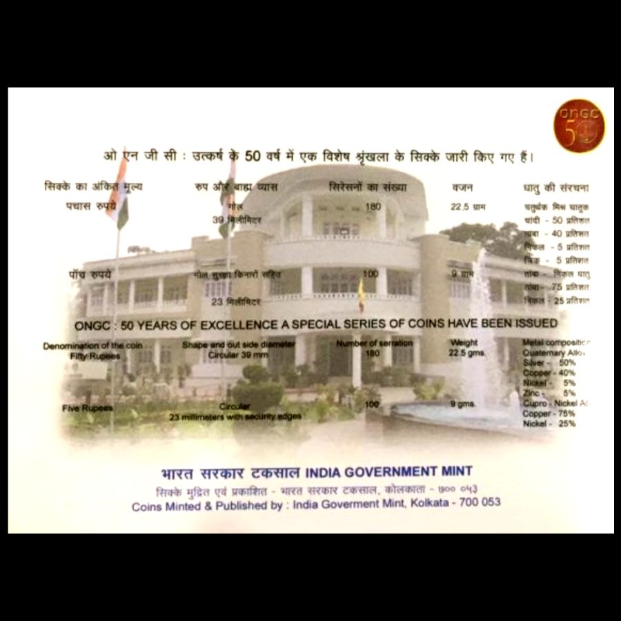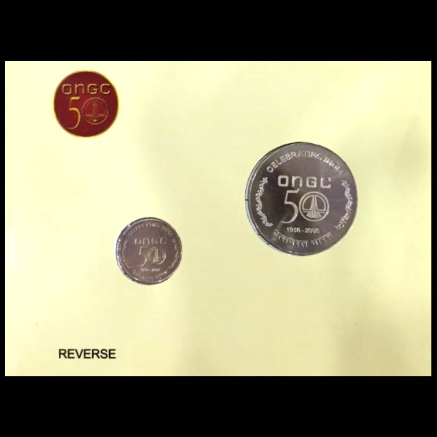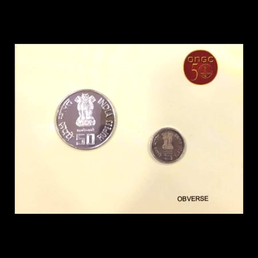 50 Years of ONGC UNC Set , 50 and 5 Rupees Silver Coin Set Mumbai Mint Issue