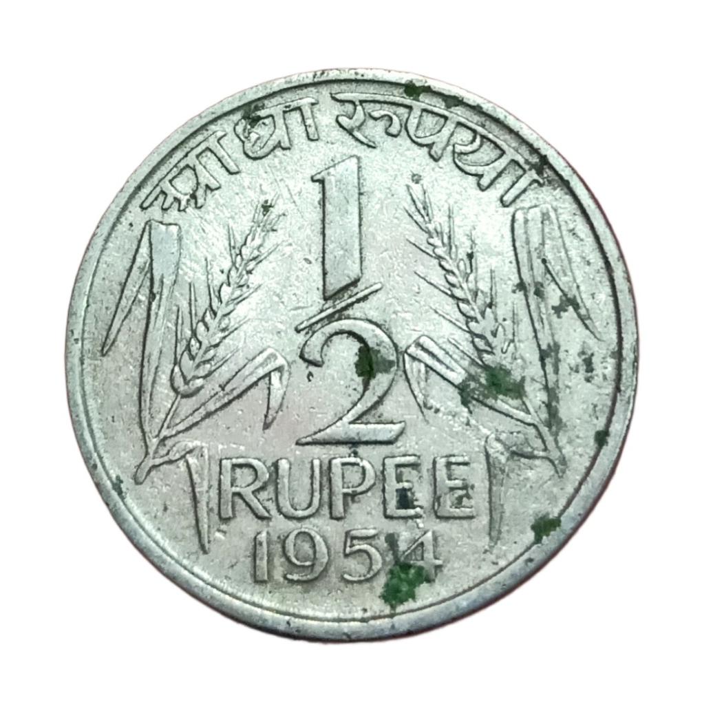 AADHA RUPIYA 1/2 Rupee Cu/Ni 1954 with SUN BURST Error **RARE** Collectable Grade.