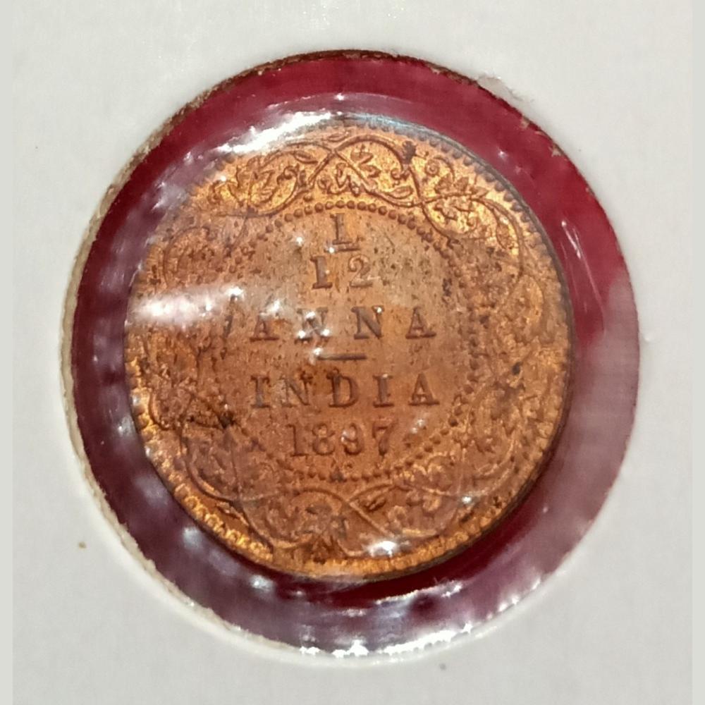 British India 1/12 ANNA Year 1897 VICTORIA EMPRESS V.SCARE RED-UNC Grade.