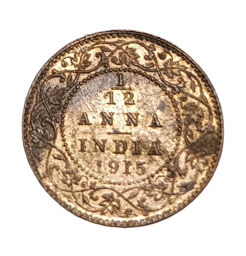 British India 1/12 ANNA Year 1915 King GEORGE-V High AUNC Grade.