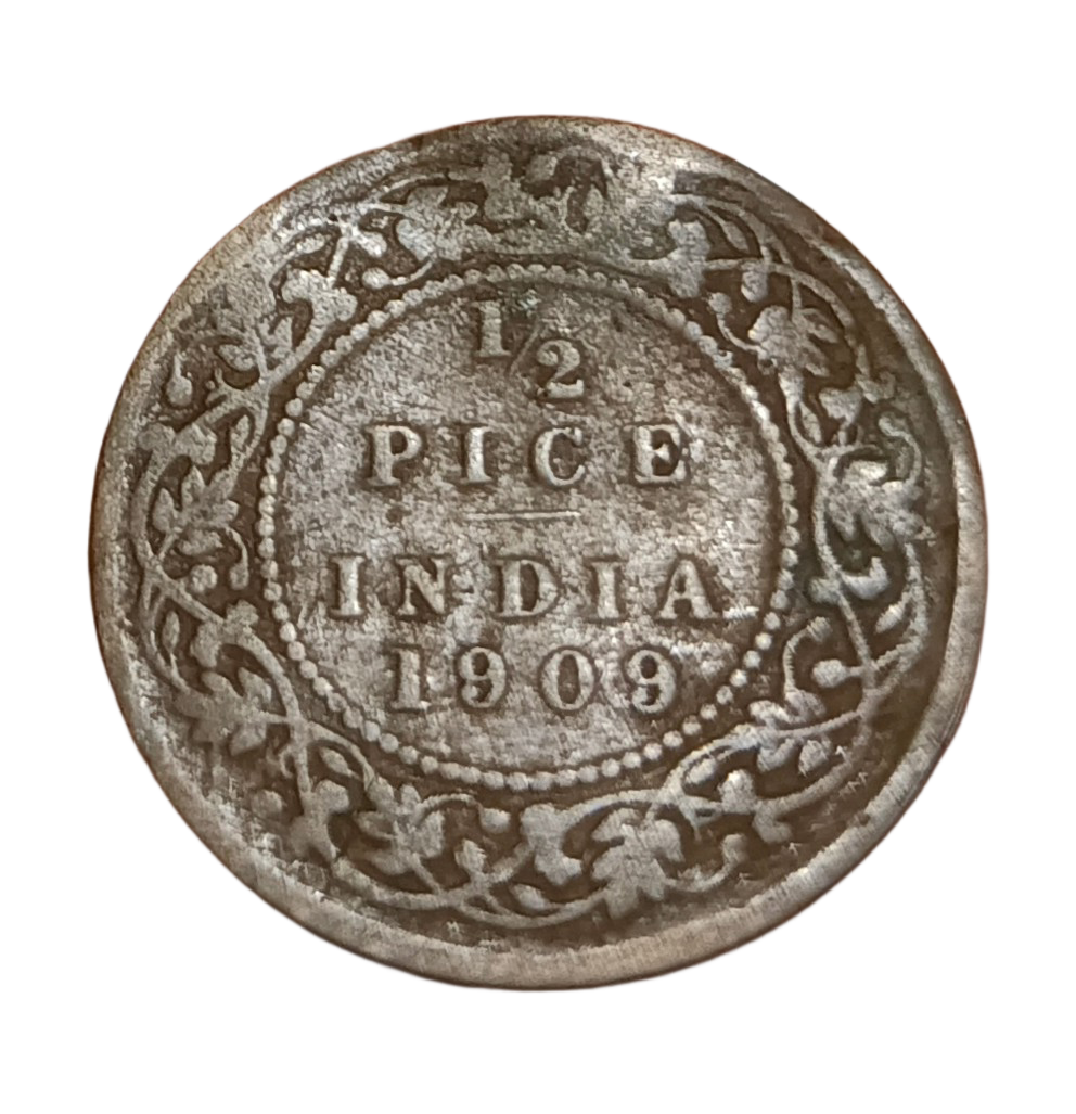 With its scarcity and unique historical value, this coin represents a valuable addition to any collection. Whether you are a seasoned collector seeking a rare piece or a history buff intrigued by the colonial past, the British India 1/2 PICE 1909 coin is a must-have item that encapsulates a bygone era of numismatic beauty.