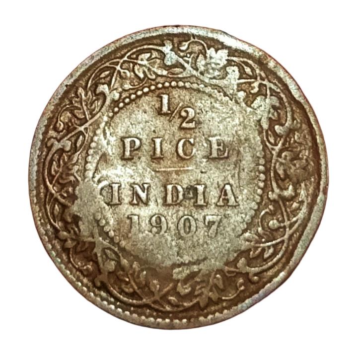 British India 1/2 PICE Year 1907 King EDWARD-VII with GHOSTING Error in Collectable Grade.