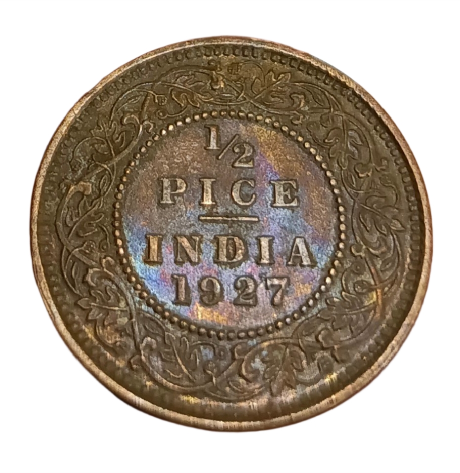 British India Copper 1/2 PICE Year 1927 King GEORGE-V High Collectable Grade.