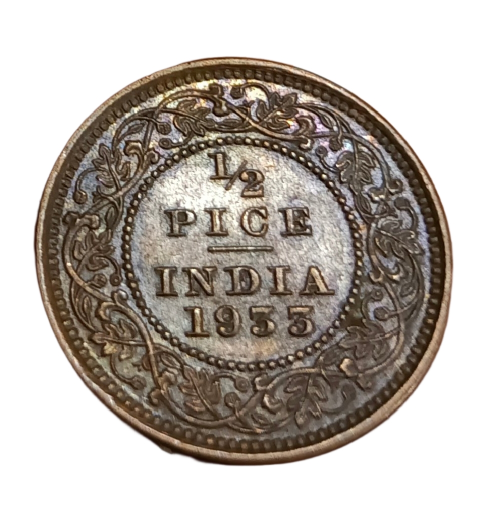 🔍 Rare 1933 British India Copper 1/2 PICE coin
