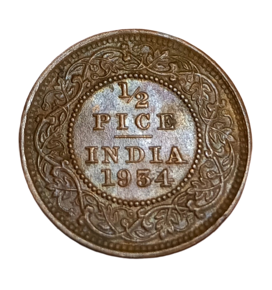 British India Copper 1/2 PICE Year 1934 King GEORGE-V High AUNC-UNC Grade.