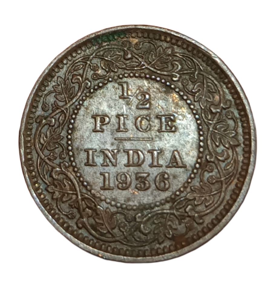 British India Copper 1/2 PICE Year 1936 King GEORGE-V Collectable Grade.