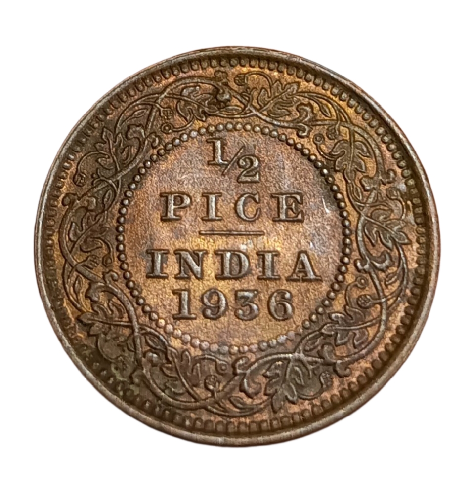 British India Copper 1/2 PICE Year 1936 King GEORGE-V High AUNC-UNC Grade.