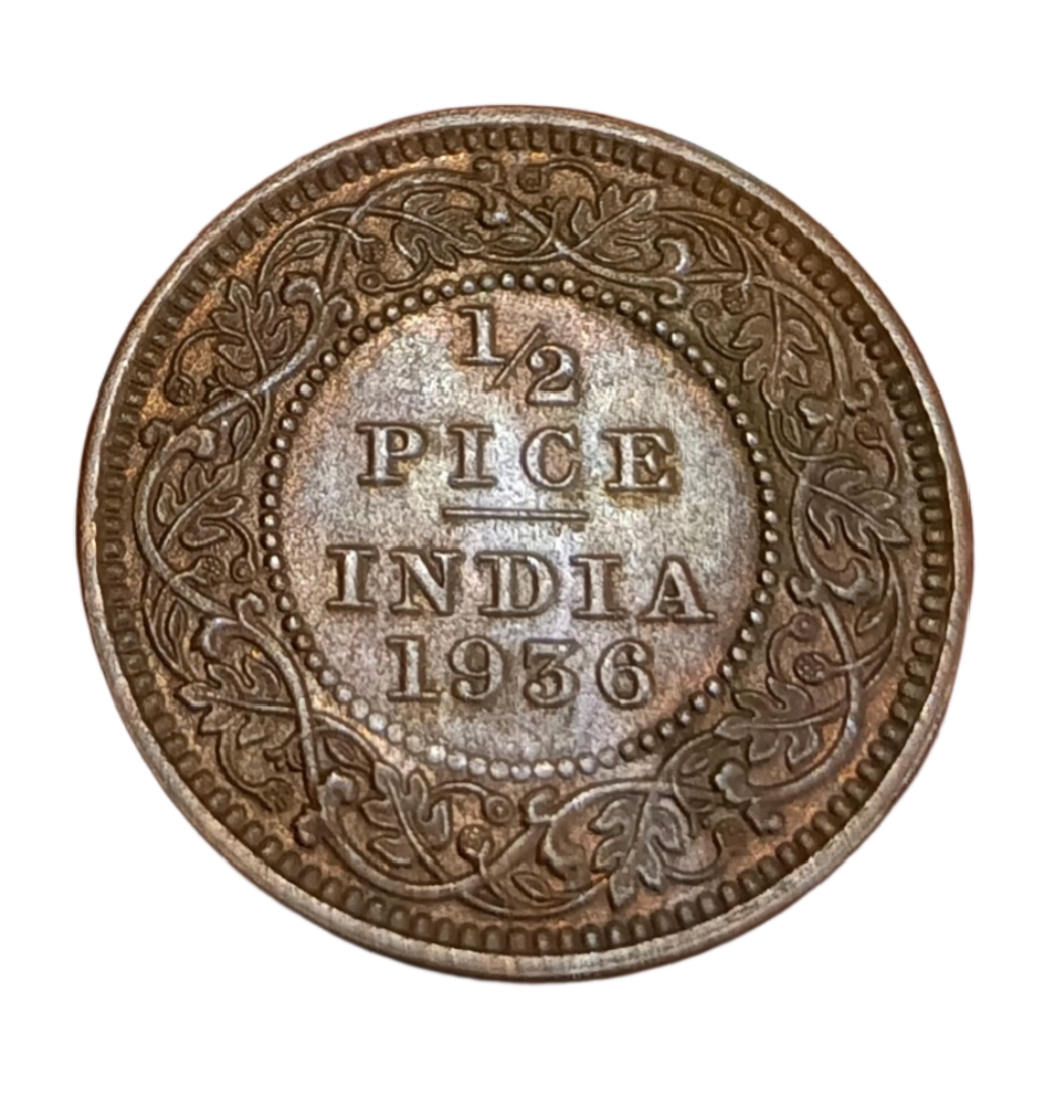 British India Copper 1/2 PICE Year 1936 King GEORGE-V High AUNC-UNC Grade.