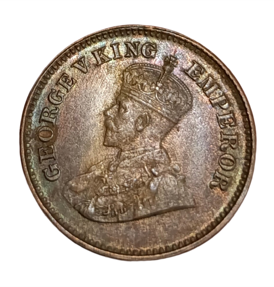 Immerse yourself in the rich history of British India with this stunning British India Copper 1/2 PICE coin from the year 1936 during the reign of King George V. This collectible piece is graded as High AUNC-UNC, showcasing its exceptional quality and preservation. The coin bears the image of King George V, adding a touch of regal elegance to any collection.